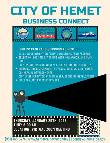 BUSINESS CONNECT - The City of Hemet, in partnership with the Hemet San Jacinto Valley Chamber of Commerce, is convening a pivotal gathering of local business leaders for an informative and interactive session with the City Manager of Hemet.